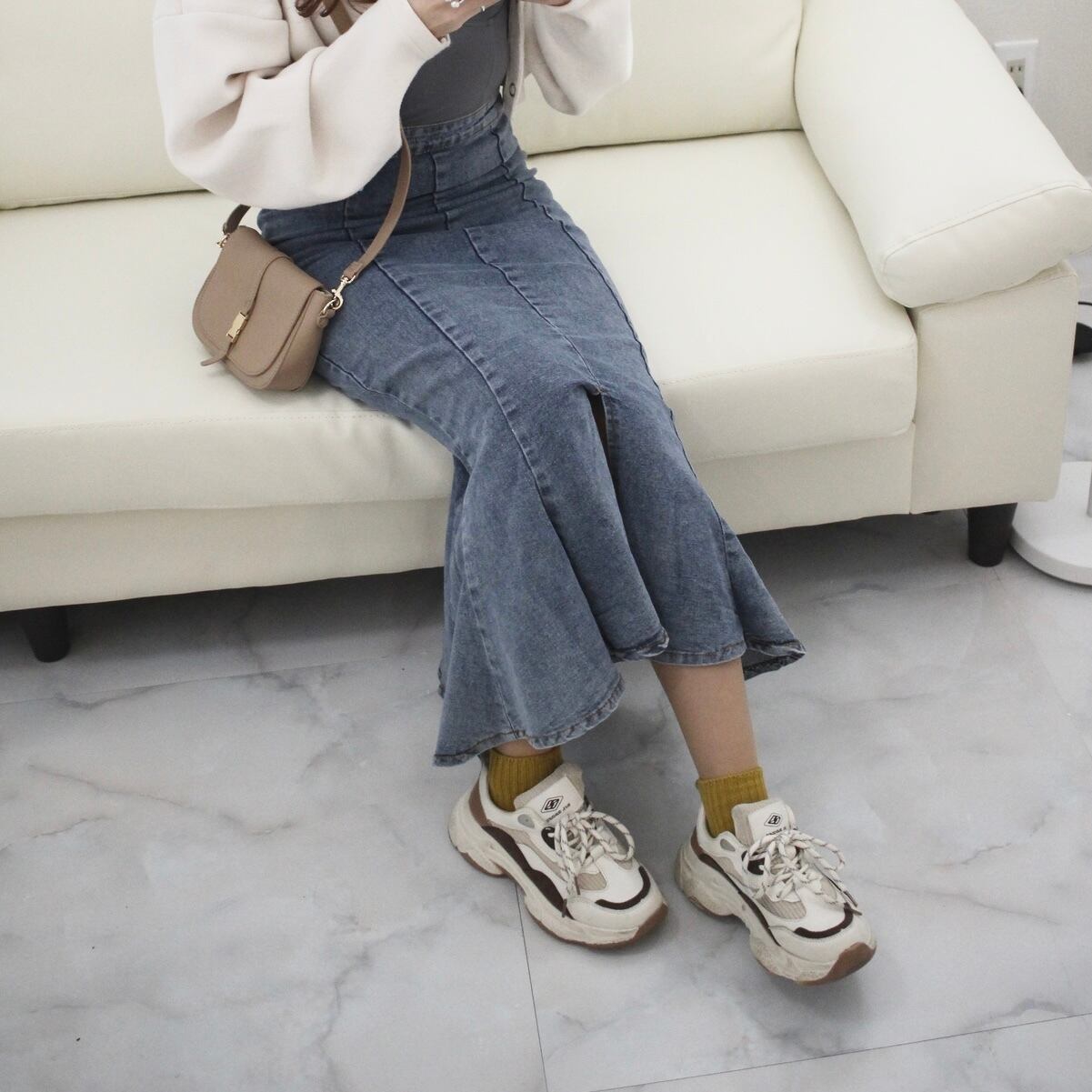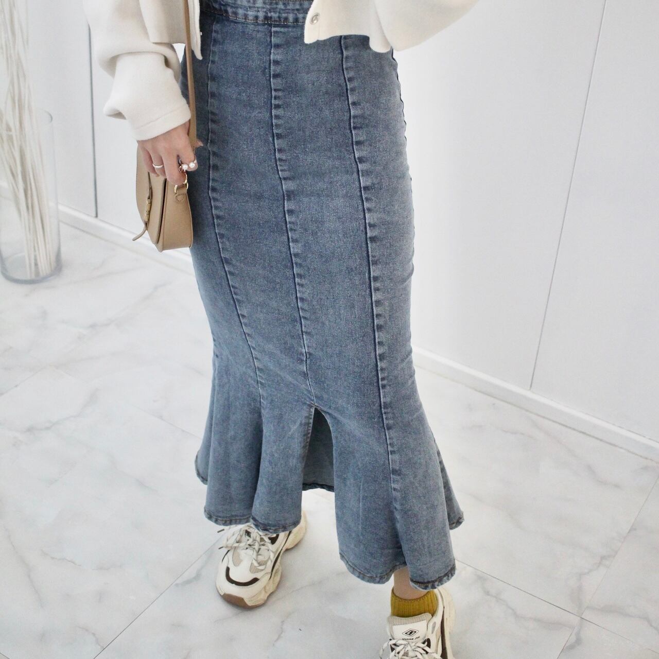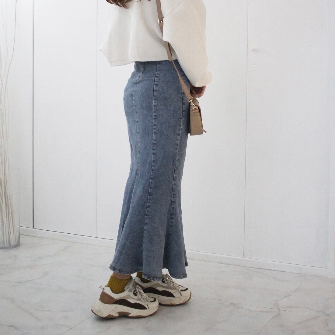 デニムのマーメイドスカートなのでシーズンレス!