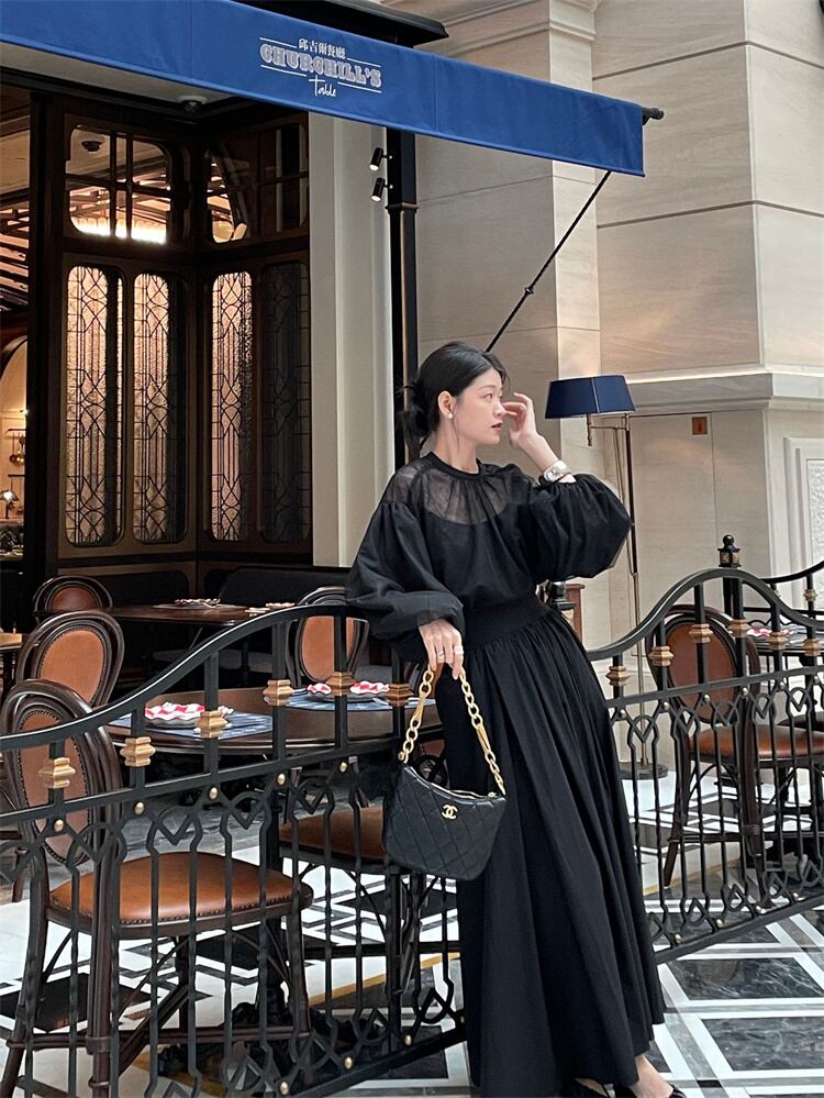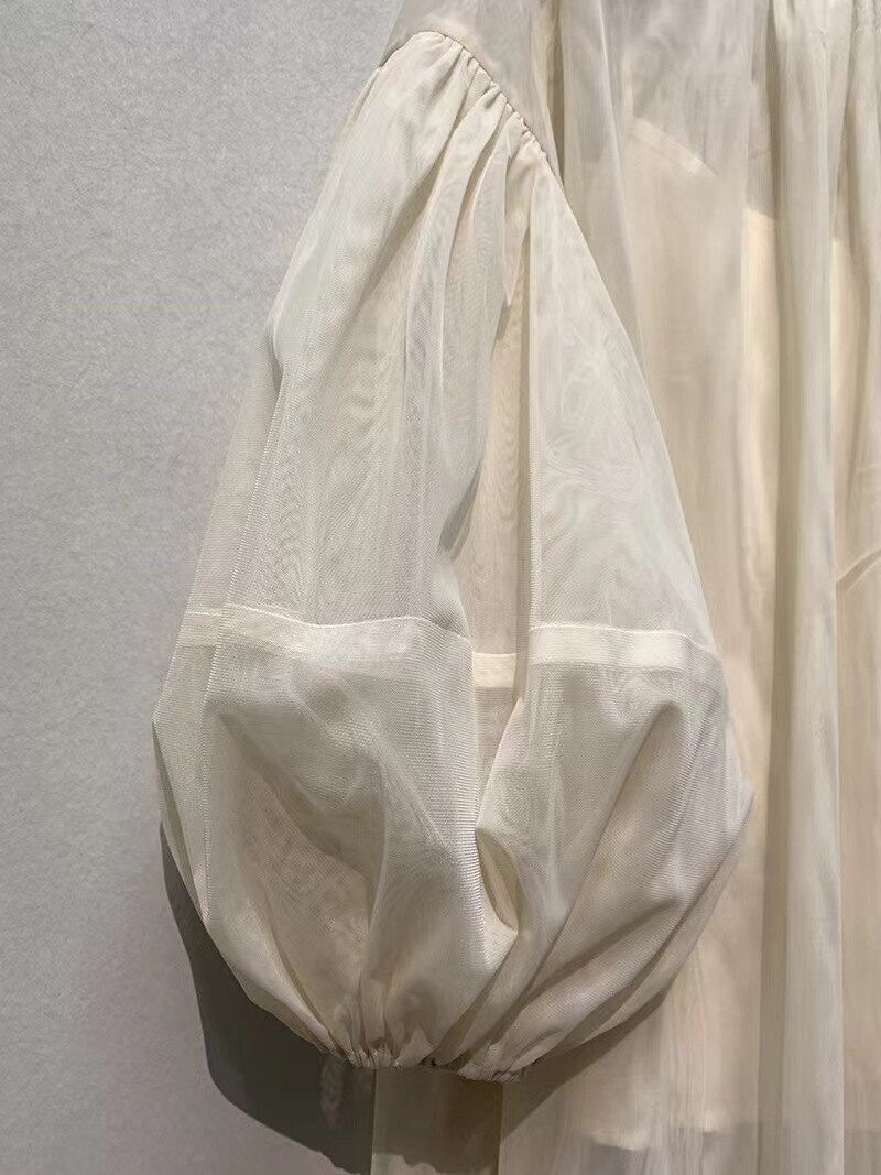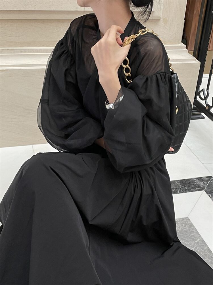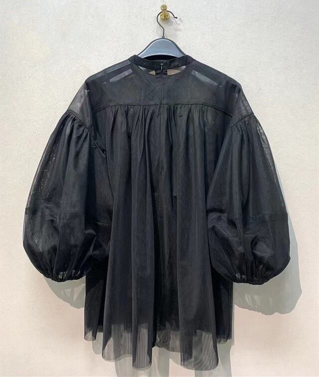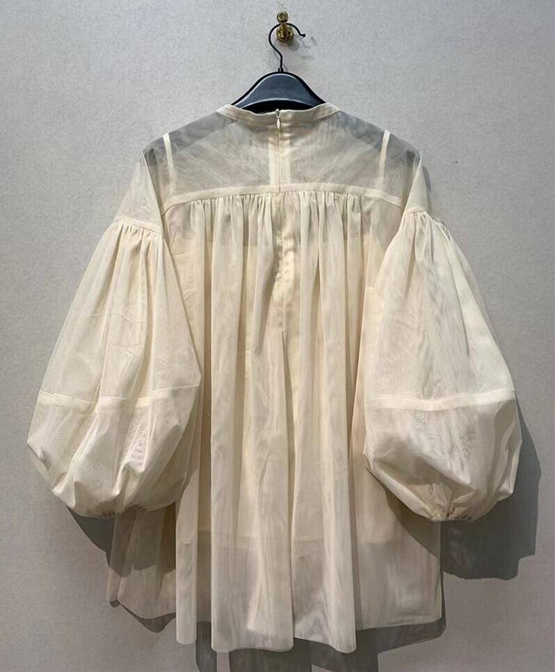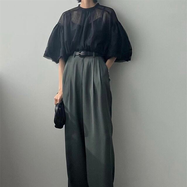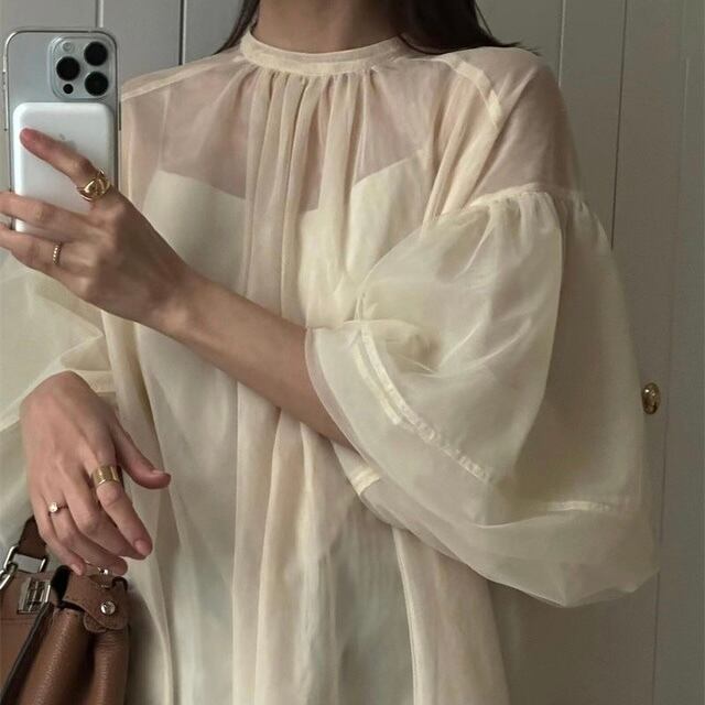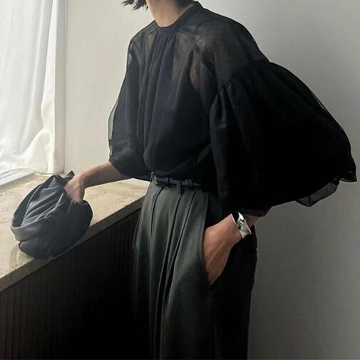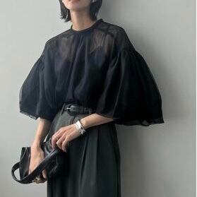 ブラウスは全体的に透け感があり、こなれた印象に。