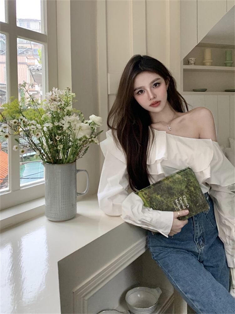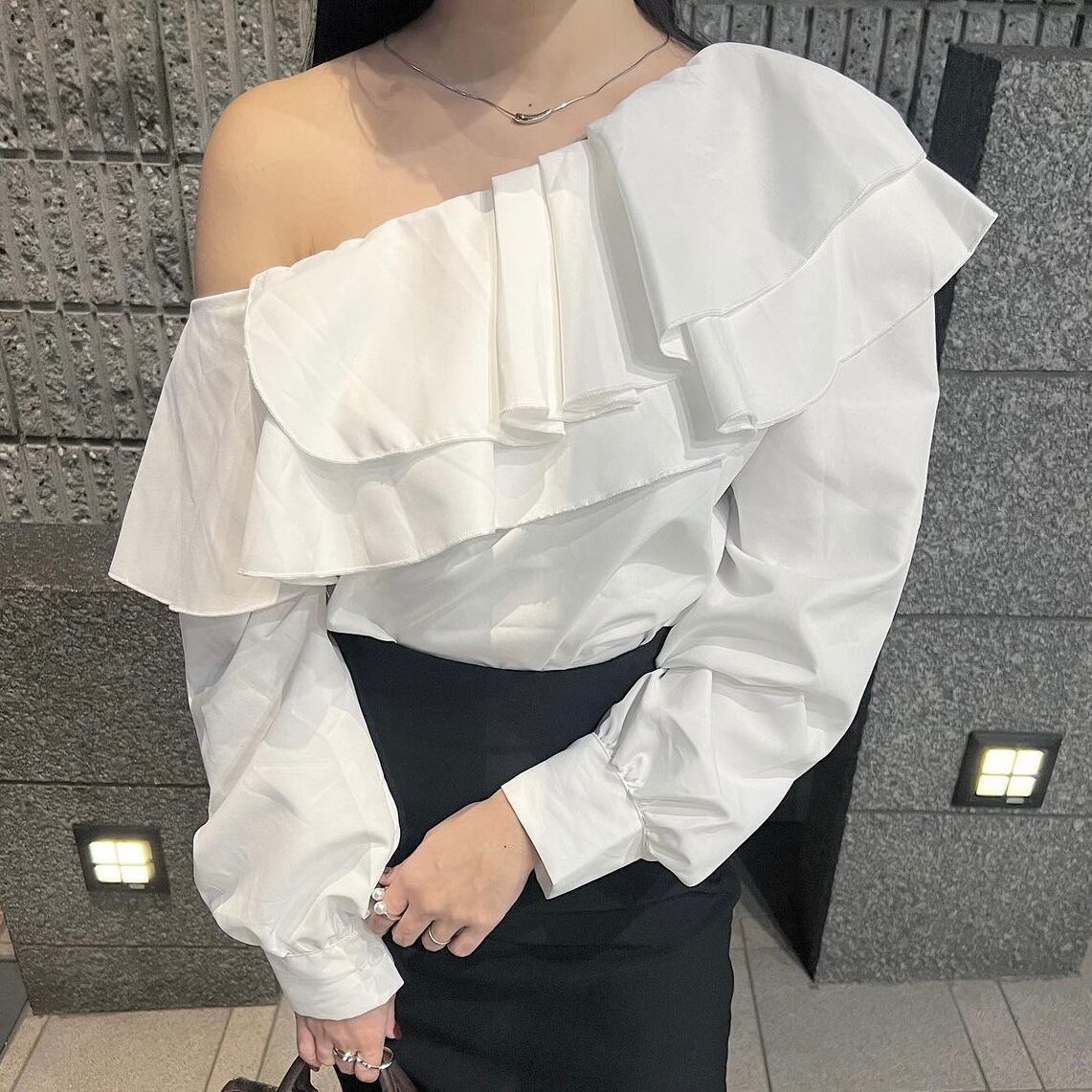 ワンショルダーフリルブラウス
