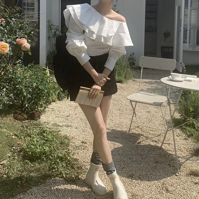 ヘルシーな肌見せのワンショルダーブラウス