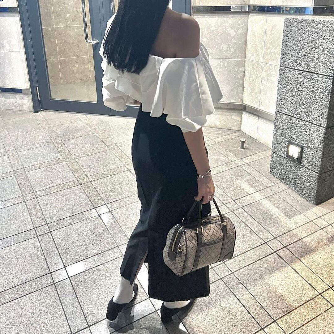 フリルのデザインが大きく印象的なシルエットで