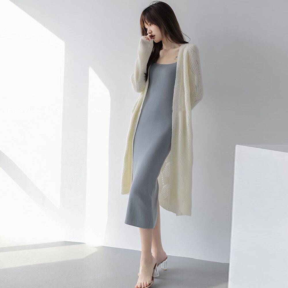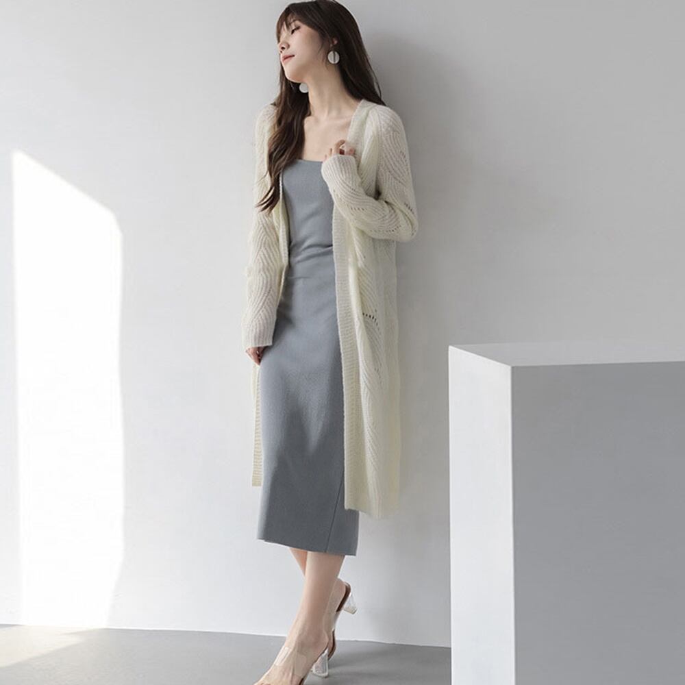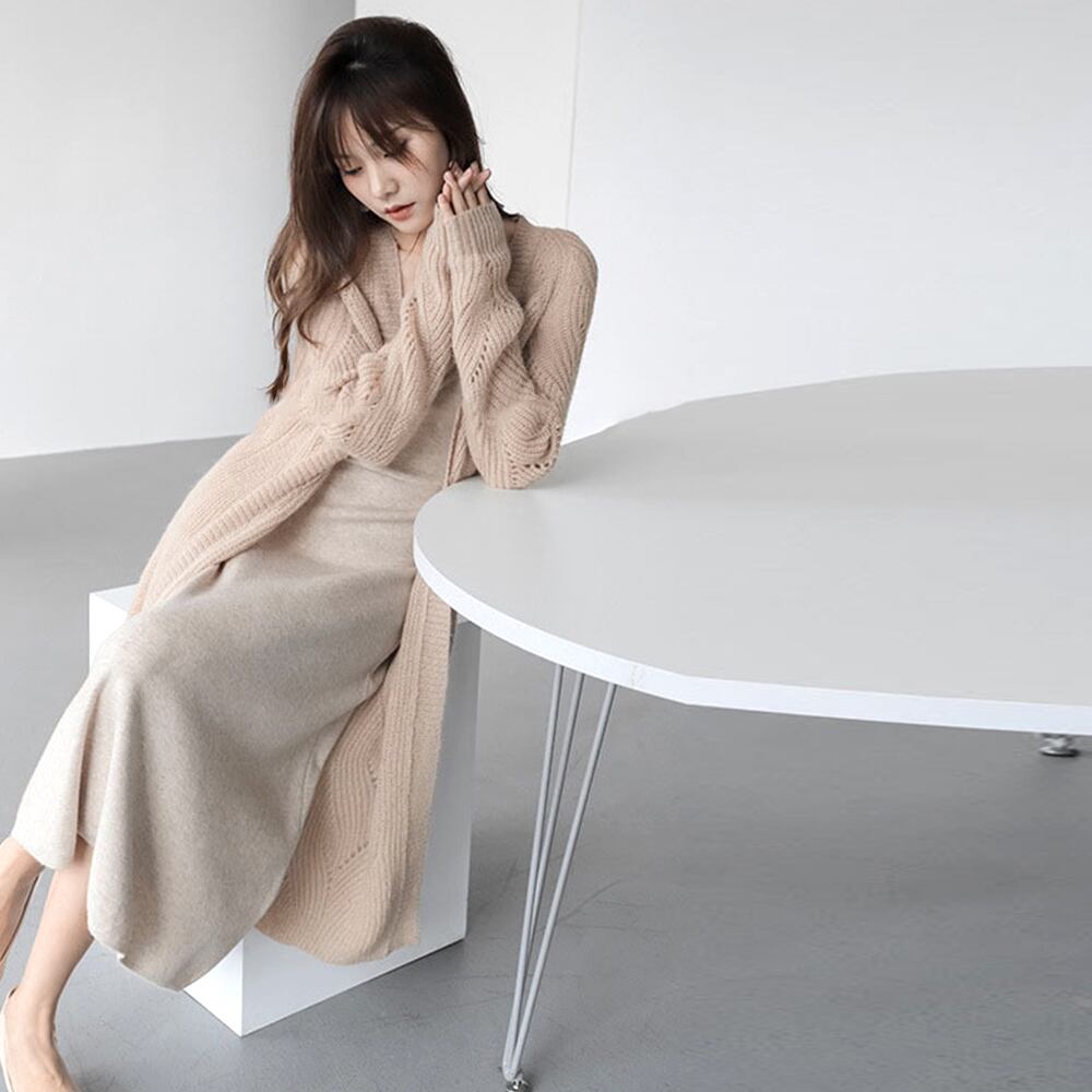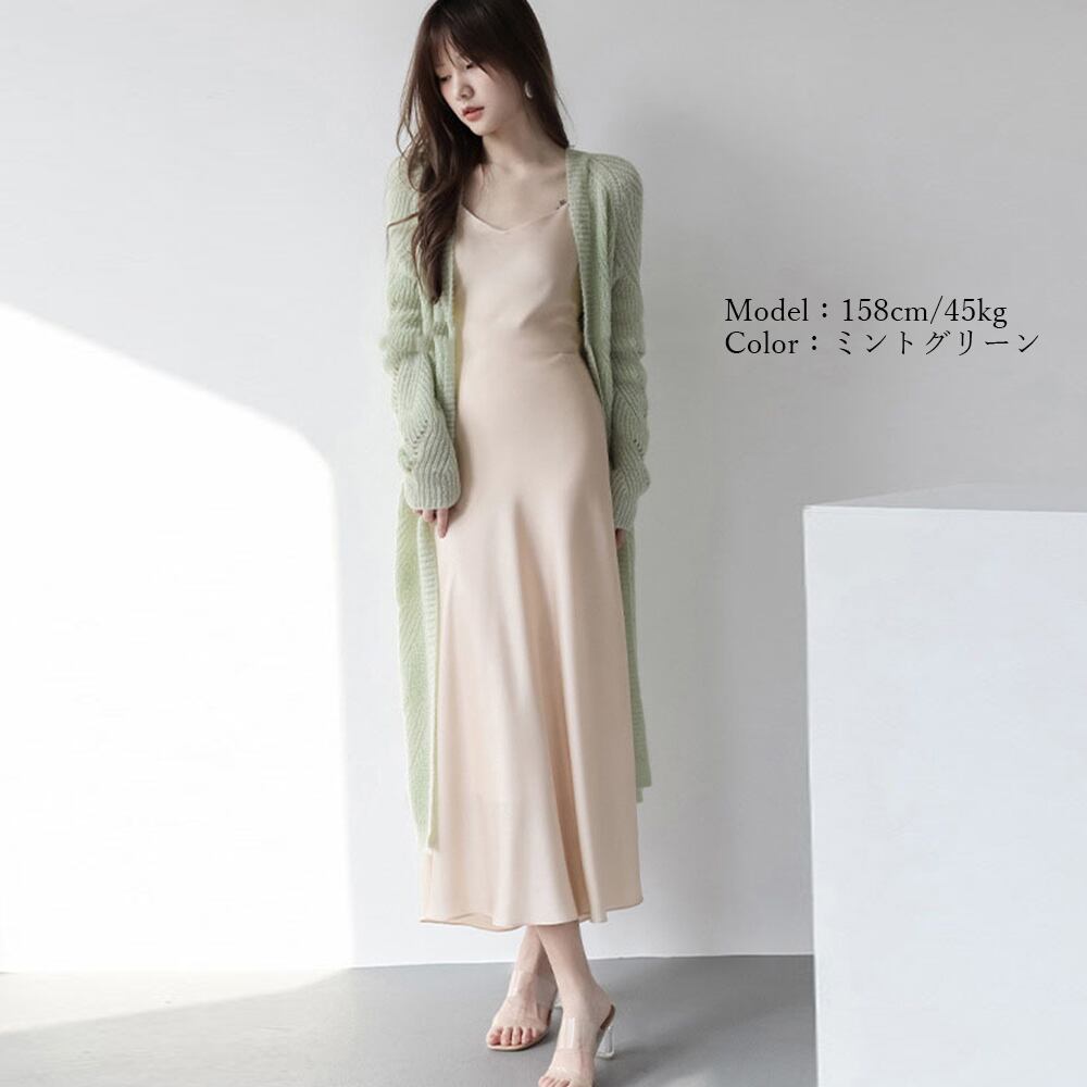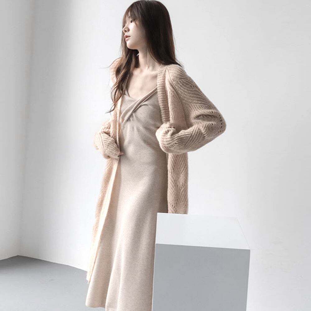 肌馴染みのいいパステルトーンと柔らかいニット素材で上品な印象に。