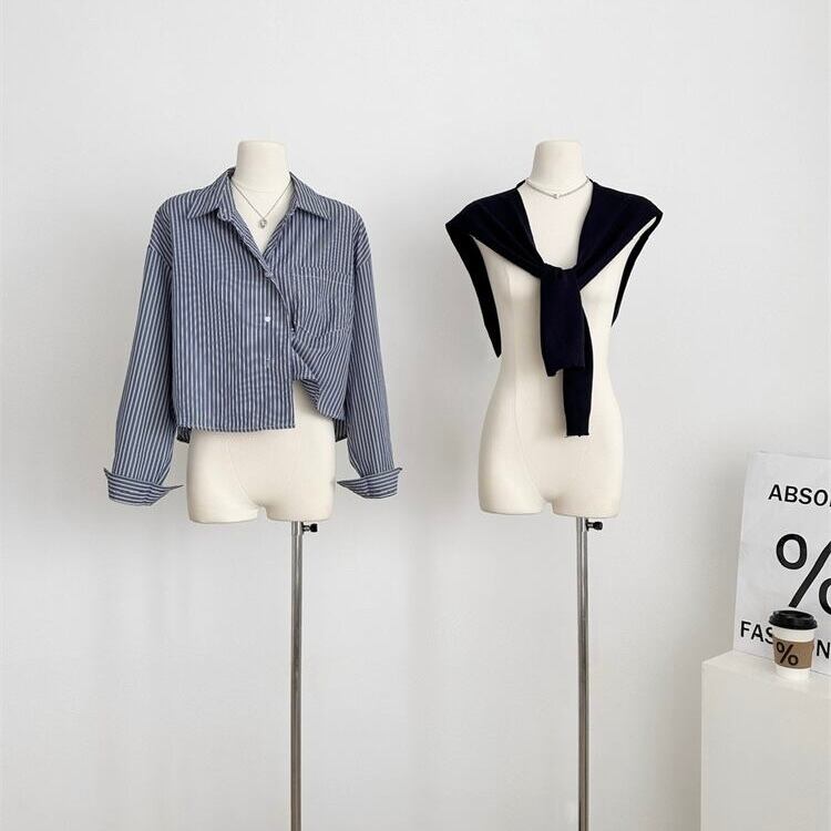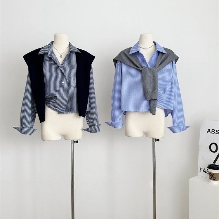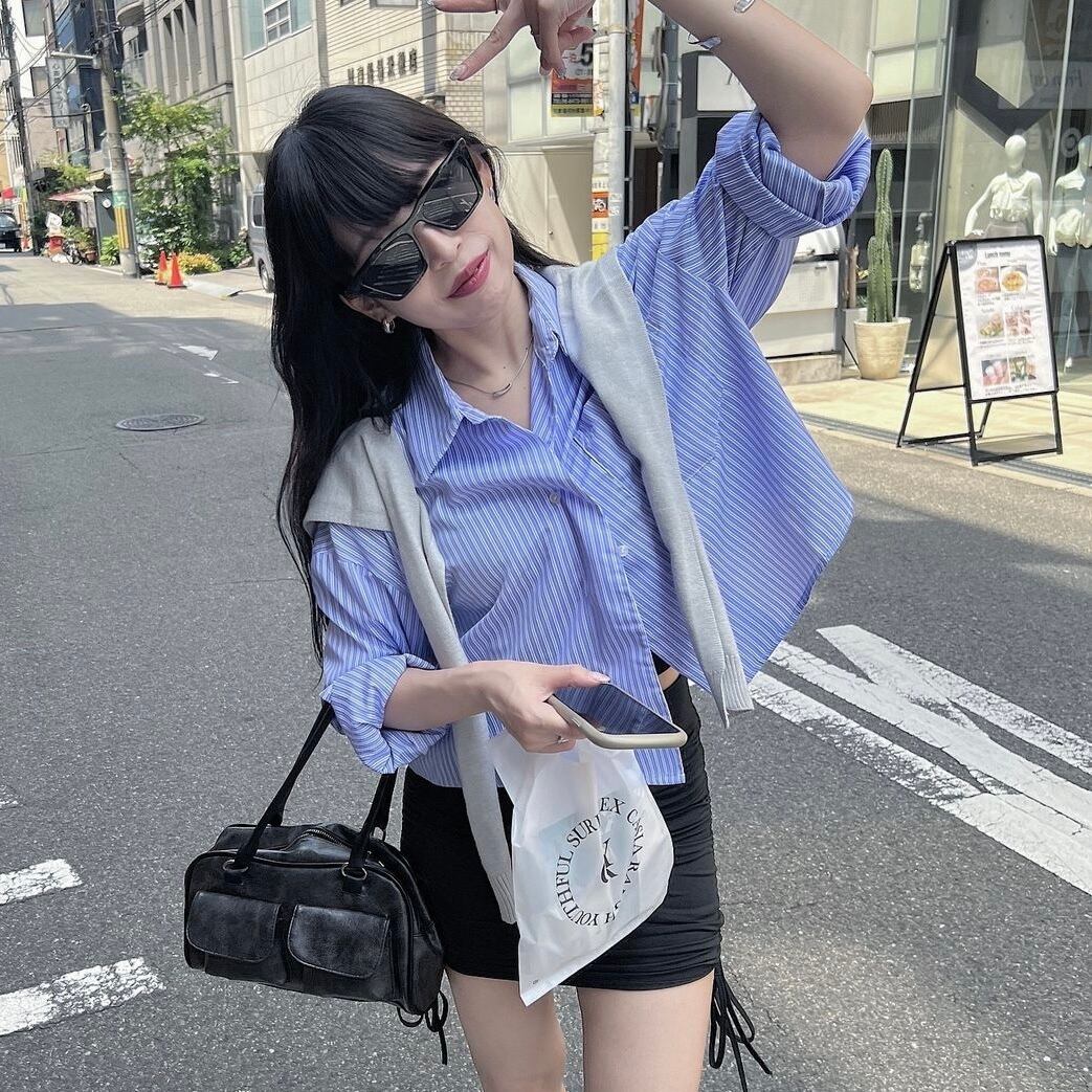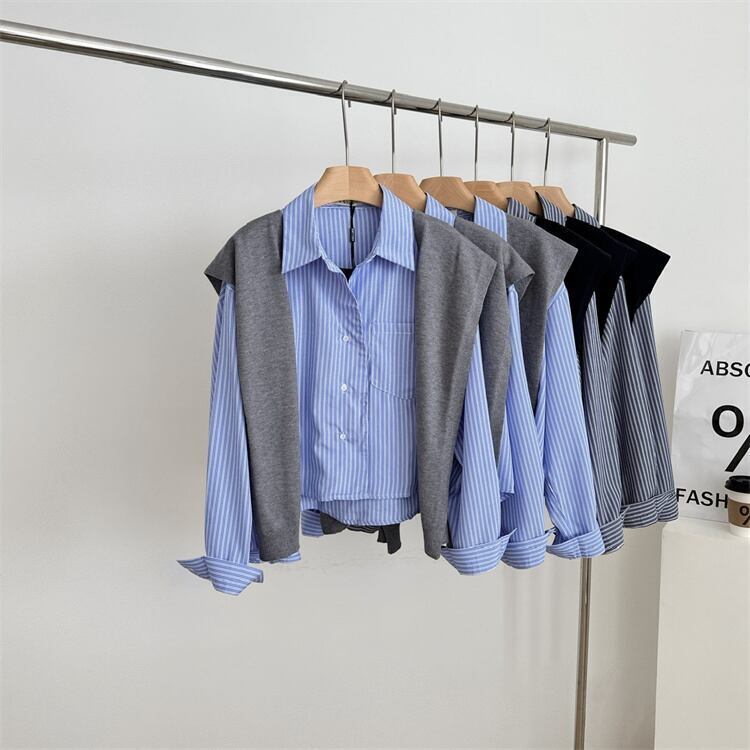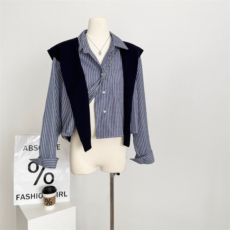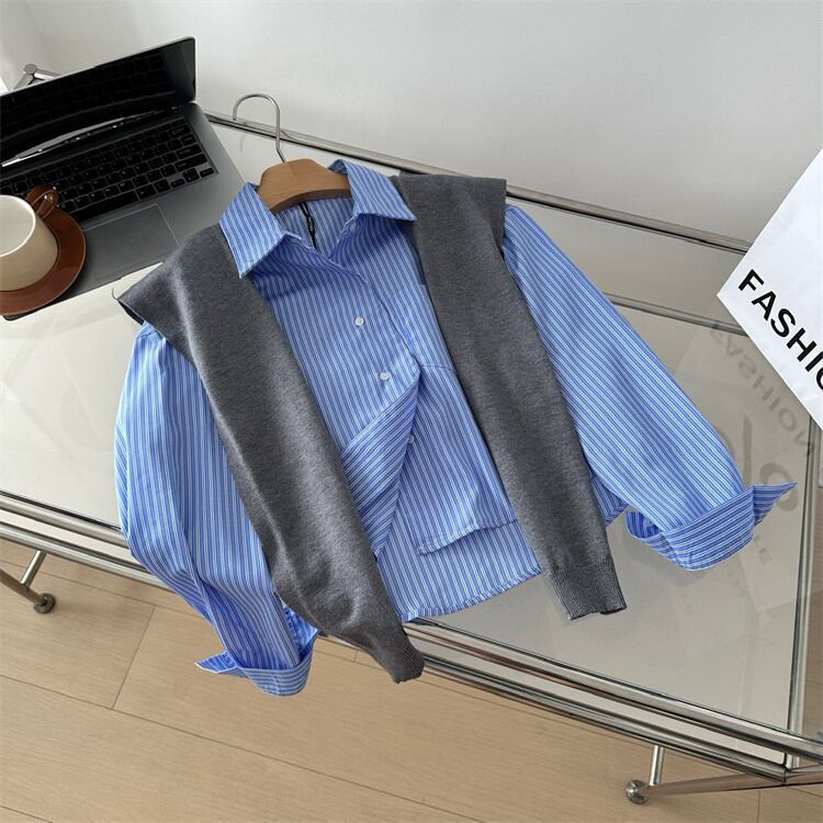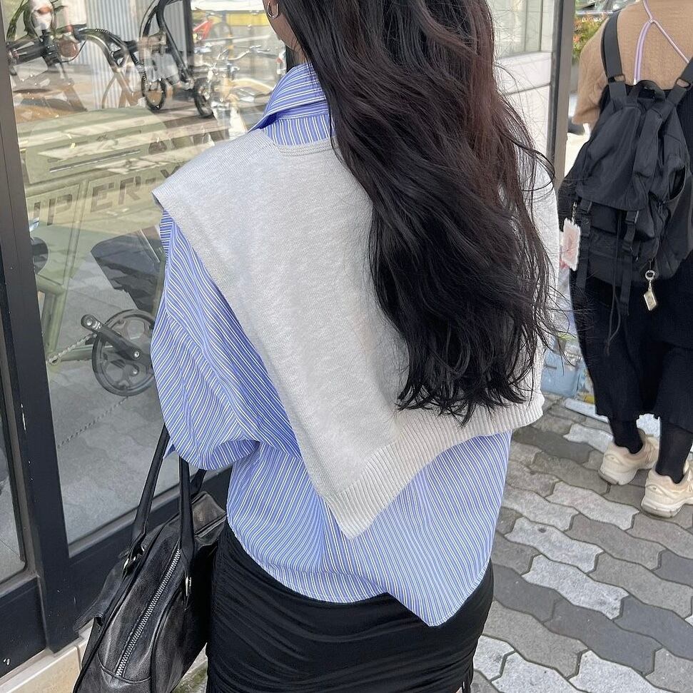 ストライプシャツ×ストールSET