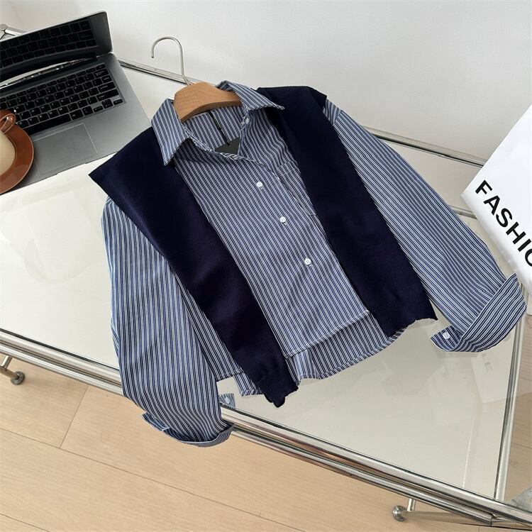 シンプルなストライプシャツと