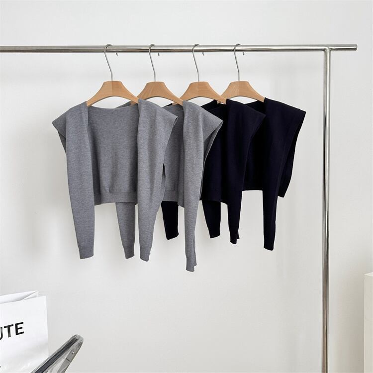 肩かけデザインのニットストールのSET!