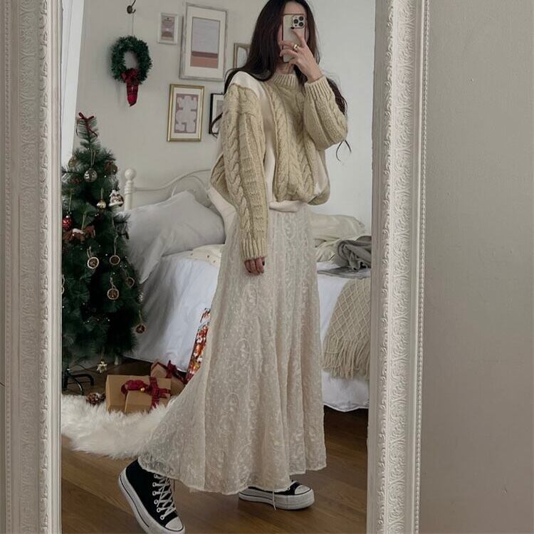 ウエストに紐がついているので、綺麗なシルエットになります。